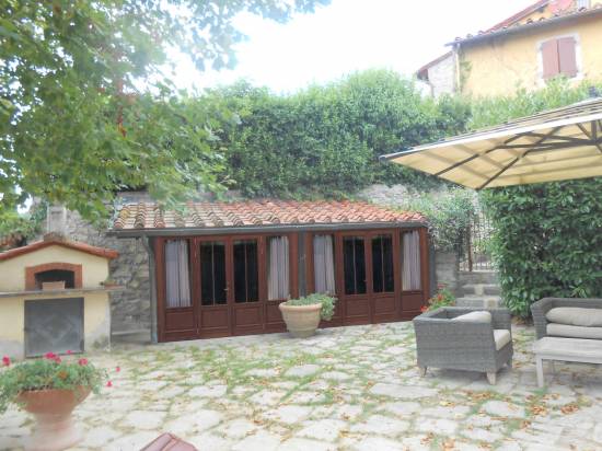 Casetta addossata in legno dŽabete di spessore mm.42 con N.02 porte doppie . Tetto con tegola toscana in cotto