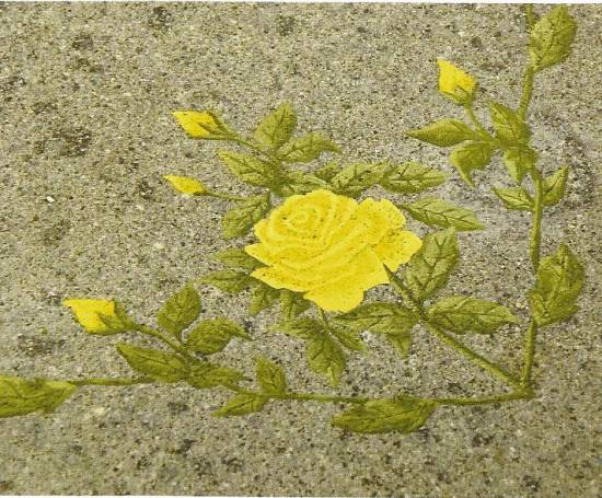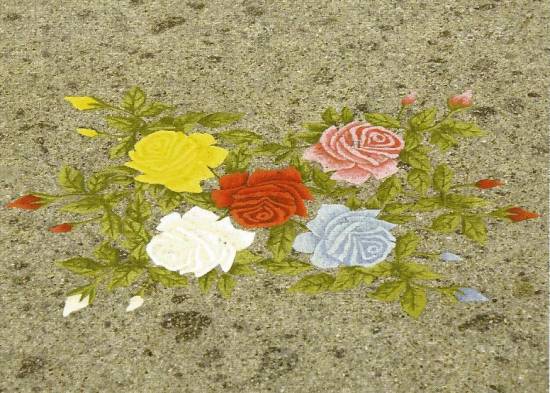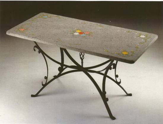 Tavolo in ferro battuto zincato e verniciato con piano in Travertino di cm.180x90 dipinto con motivo floreale