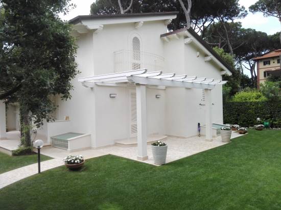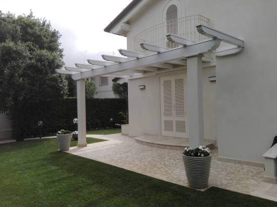Struttura in abete lamellare con pilastri e travi dimensionati secondo calcoli strutturali . Laccata .