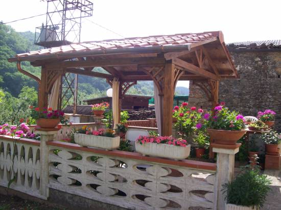 Struttura in abete lamellare con capriate . Pilastri e travi dimensionati secondo calcoli strutturali . Copertura con perlinato . guaina e tegola toscana in polipropilene .