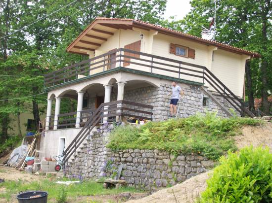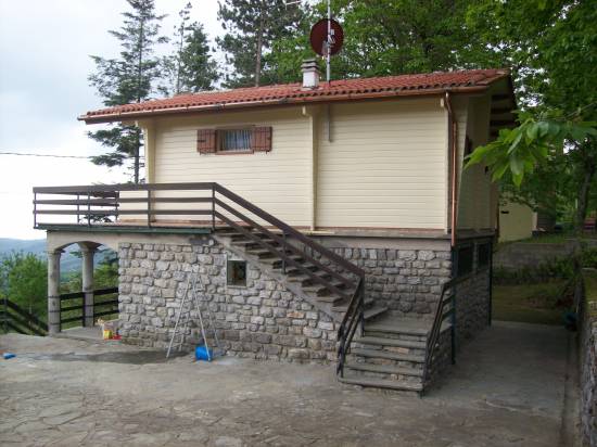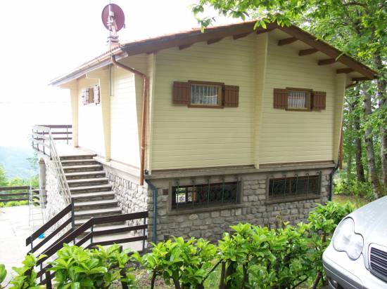 Casa in bio-edilizia . Struttura in abete lamellare con pilastri e travi dimensionati secondo calcoli strutturali . Tetto coibentato e ventilato . Pareti coibentate . Infissi esterni in legno